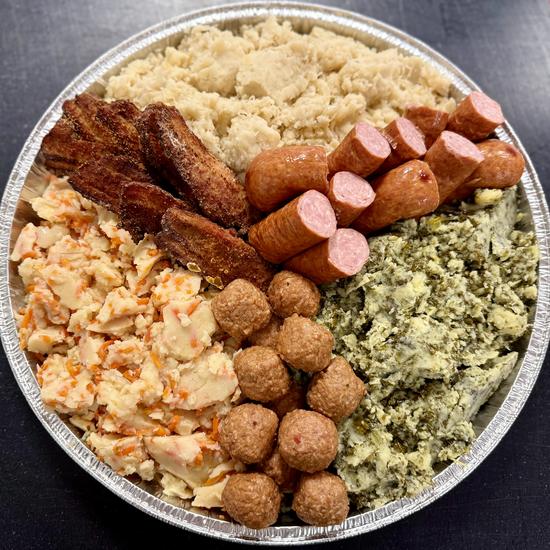 Partypan vullen met een kopje water, en zet de pan op stand 2. Zet de gevulde partyschaal met inhoud erin en plaats de deksel erop. Na ongeveer 20 minuten is de stamppot pan heerlijk warm.